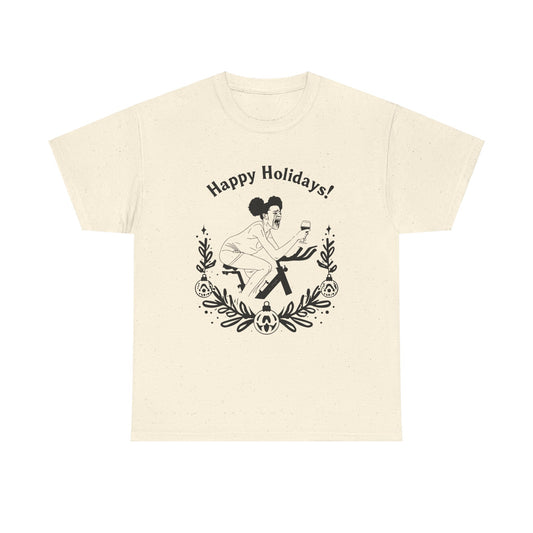 Happy Holidays Chaotic Christmas Graphic T-Shirt | Funny Holiday Shirt | Cozy Comfort Colors | Unisex Christmas Gift for Men & Women Holiday Humor